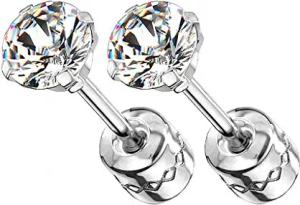 Doppel Ohrstecker Edelstahl Stecker mit Zirkonia Kristall Diamant Form Stein Ohrringe medizinisch rund klein Damen Herren Kinder Silber 3mm