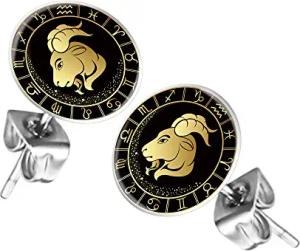 Ohrstecker Ohrringe Stecker Platte mit Sternzeichen Motiv Tierkreiszeichen Silber für Damen Herren oder Kinder Widder