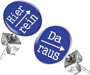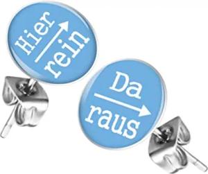 Ohrstecker Studs Buttons Silber Platte mit Spruch "Hier rein, Da raus" - 12mm in Blau