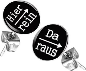 Ohrstecker Studs Buttons Silber Platte mit Spruch "Hier rein, Da raus" - 12mm in Schwarz