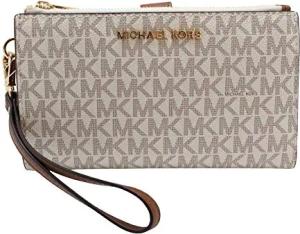 Jet Set Travel Double Zip Wristlet - Signature PVC (Vanilla PVC/Dark Acorn)