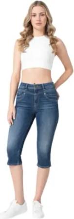 M.O.D Damen Capri Jeans Rea High Rise in Dark Blue Stretch (DE/NL/SE/PL, Bundweite, 31, Regular, Kurz, Dark Blue 628)
