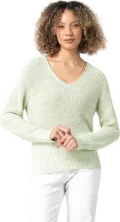 M.O.D Damen Strickpullover mit V-Ausschnitt in Mint Melange (DE/NL/SE/PL, Alphanumerisch, XXL, Regular, Regular, Mint Melange)