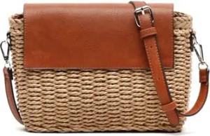 Kena Umhängetasche mit Überschlag in Bastoptik Damen - Kena Naturfarben 16x23x9 cm