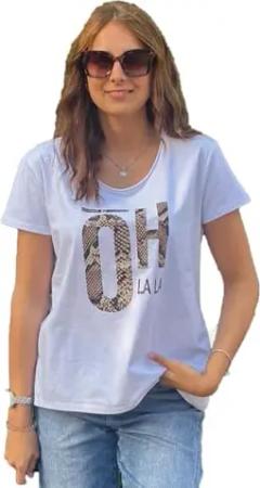 MG12857 Damen Rundhals T-Shirt OH LA LA Snake Print, White, S