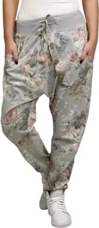 Damen Hose Cargohose Blumen Sweatpants Jogginghose Baumwolle Freizeithose Boyfriend Haremshose Blumenprint, Model 4, One Size (Gr. 36, 38, 40 )