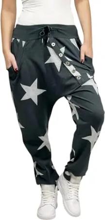 132 Damen Hose Sweatpants Jogginghose Baumwolle Freizeithose Boyfriend Baggy Haremshose Sternen Print mit Gummibund Graphit