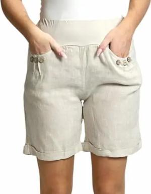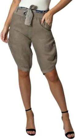 276 Damen Leinenshorts Bermuda – Kurze Sommerhose aus 100% Leinen, luftig, elegant, mit Knöpfen Fango XXL