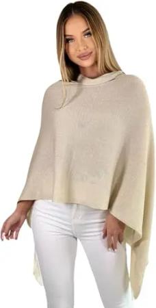 221 Poncho aus Mischgewebe für Damen Cape Überwurf One Size Beige