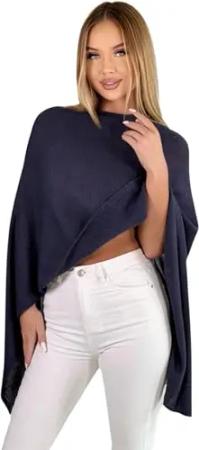 221 Poncho aus Mischgewebe für Damen Cape Überwurf One Size Dunkelblau