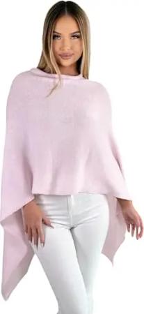 221 Poncho aus Mischgewebe für Damen Cape Überwurf One Size Hellrosa