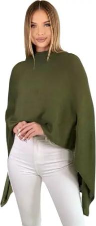 221 Poncho aus Mischgewebe für Damen Cape Überwurf One Size Khaki