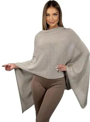 221 Poncho aus Mischgewebe für Damen Cape Überwurf One Size Taupe