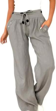 269 Damen Leinenhose Freizeithose 100% Leinen Hose Elegante Stoffhose Grau XL
