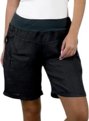 276 Damen Leinenshorts Bermuda – Kurze Sommerhose aus 100% Leinen, luftig, elegant, mit Knöpfen Schwarz XXL