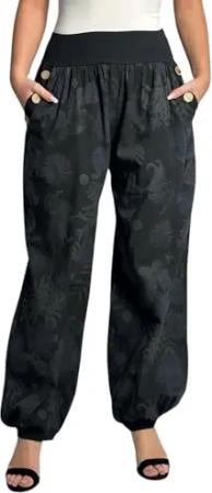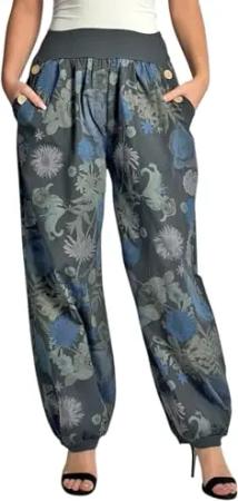 277 Damen leichte Blumenprint Hose Sommerhose Haremshose Ballonhose Blumen Pumphose Aladinhose Sommer Baggy Pants Graphit