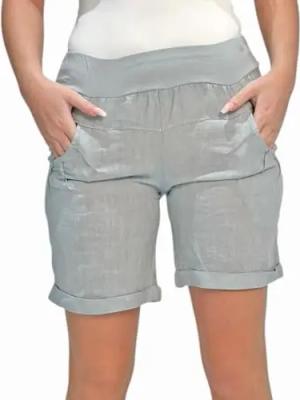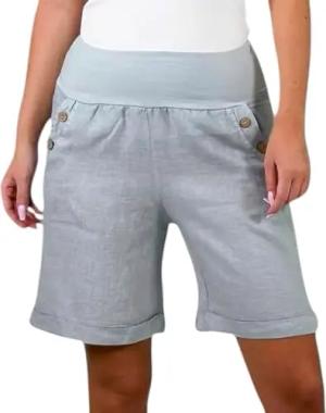 280 Damen Leinenshorts Bermuda lockere Kurze Hose Freizeithose 100% Leinen Shorts mit DREI Knöpfen Sommer Strand Grau L