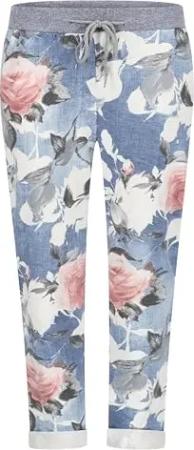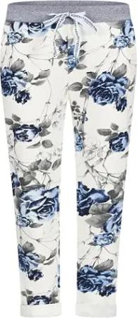 287 Damen Hose Cargohose Blumen Sweatpants Jogginghose Baumwolle Freizeithose Boyfriend Weiß-Blau Blumen Model 33