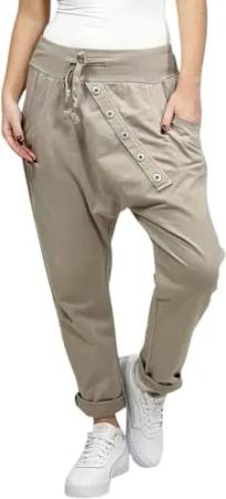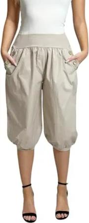 371 Caprihosen Damen Hose Capri Freizeithose Baggy Haremshose Baumwolle Beige