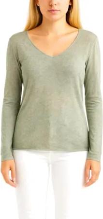 303 Damen Leichter Pullover mit Wascheffekt Strick Sweatshirt Pulli Oberteil Longshirt Oliv