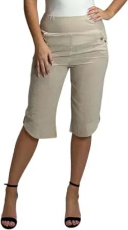 3091 Charmante Capri-Hose mit Knopfakzenten in Uni-Größe – Reine Baumwolle für optimalen Beige