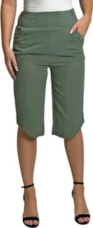 3091 Charmante Capri-Hose mit Knopfakzenten in Uni-Größe – Reine Baumwolle für optimalen Olive