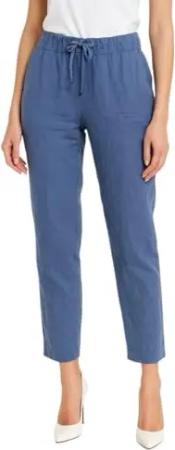 334 Damen Leinenhose Freizeithose 100% Leinen Hose Elegante Stoffhose Jeansblau S