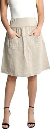 358 Damen Leinen Rock Sommerrock locker kurz Freizeit 100% Leinen 100% Leinenrock Strand Beige