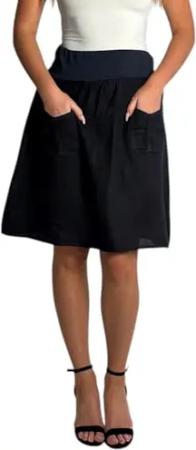358 Damen Leinen Rock Sommerrock locker kurz Freizeit 100% Leinen 100% Leinenrock Strand Schwarz