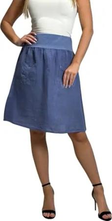 358 Damen Leinen Rock Sommerrock locker kurz Freizeit 100% Leinen 100% Leinenrock Strand Jeansblau