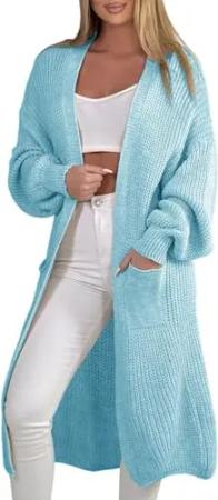 384 Longstrickjacke extra Lange Strickjacke Cardigan Jacke Hellblau