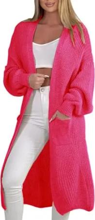 384 Longstrickjacke extra Lange Strickjacke Cardigan Jacke Magenta