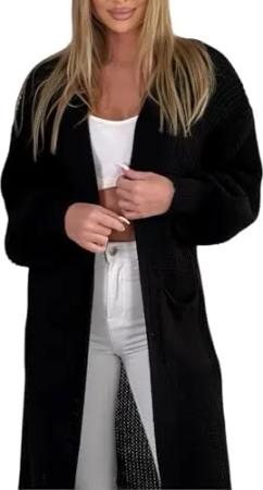 384 Longstrickjacke extra Lange Strickjacke Cardigan Jacke Schwarz