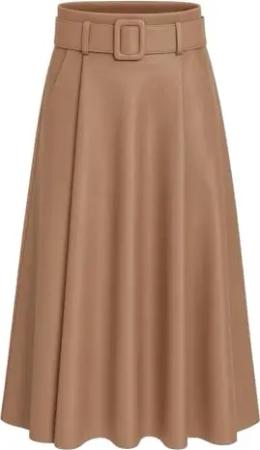 401 Damen A-Linien Rock mit Gürtel – Kunstleder Camel