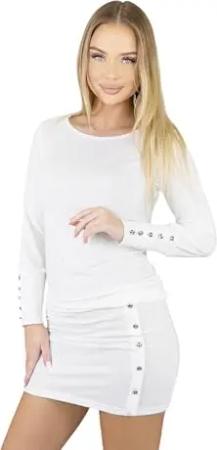 629 Damen Kleid Longshirt mit Knöpfen Tunika figurbetont Cocktail Dress 36 38 40 42 45 Creme L