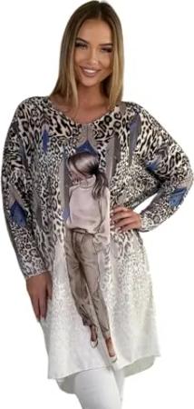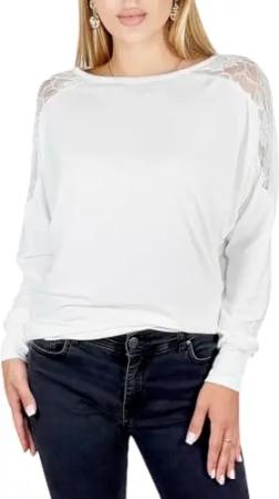 20-01 Langarmshirt Stilvolles Damen-Longshirt Tunika mit Spitzenärmeln 2001 Creme S