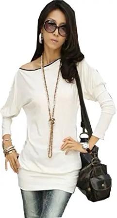 Idar Baumwolle Fledermaus Longshirt Bluse Tunika Pulli Weiß XL