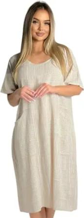 Damen 100% Baumwollkleid Casual Shirtkleid Style Strandkleid Sommerkleid 377 beige