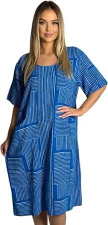 387 Leuchtendes 100% Baumwolle Basic T-Shirt-Kleid - Lässige Sommermode, Kurzärmelig, Weiches und Bequemes Material Royalblau