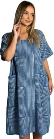Damen 100% Baumwollkleid Casual Shirtkleid Style Strandkleid Sommerkleid 377 Jeansblau