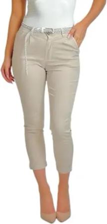 Damen Baumwolle Klassische Chino Hose mit Gürtel (Mod. 369) Beige M