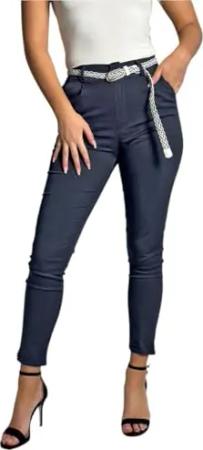 Damen Baumwolle Klassische Chino Hose mit Gürtel (Mod. 369) Dunkelblau L