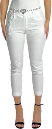 Damen Baumwolle Klassische Chino Hose mit Gürtel (Mod. 369) weiß L
