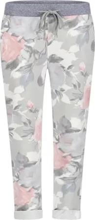 130 Damen Hose Blumen Sweatpants Jogginghose Baumwolle Freizeithose Boyfriend Sporthose Blumenprint Hellgrau