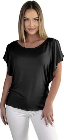 Damen Shirt mit Schmetterlingsärmeln Tshirt Top Bluse Longshirt Tunika Tanktop Fala schwarz S
