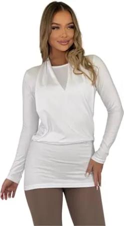 Felic Langes Shirt mit Wasserfallkragen – Baumwolle, figurbetont & bequem Weiß XL