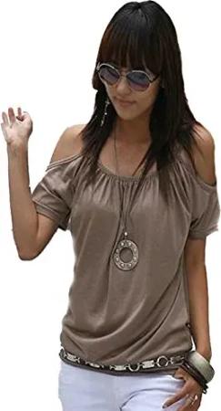 Japan Style Damen Top T - Shirt Bluse Longshirt Tunika Tanktop Oberteil NATA kakao S
