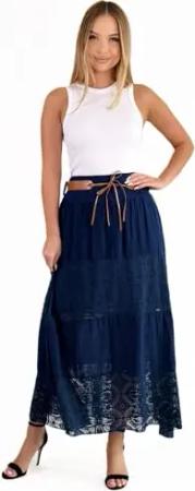 Langer Baumwollrock mit Spitze & Gürtel 3094 Dunkelblau