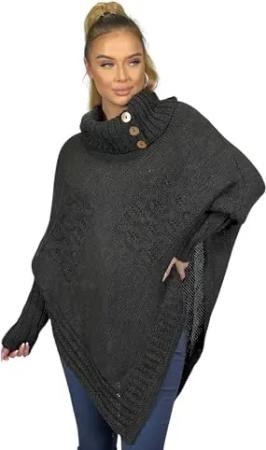 Poncho Strick Sweatshirt Pullover Umhang Überwurf 30-01 Graphit