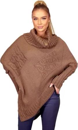 Poncho Strick Sweatshirt Pullover Umhang Überwurf 30-01 Kakao